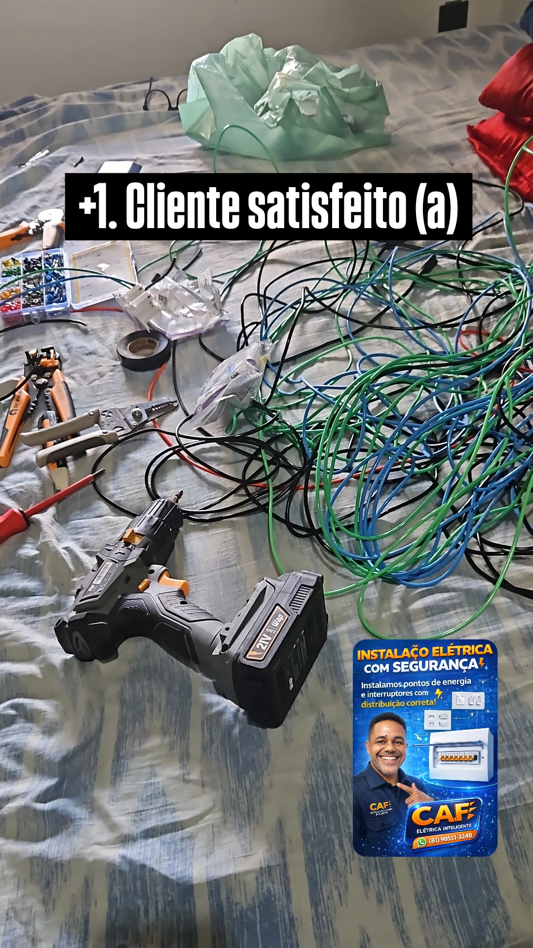 Precisa de um eletricista de confiança? Atuo com instalações elétricas prediais e residenciais, pequenos reparos e automação inteligente para tornar sua casa mais moderna, prática e segura. Realizo troca de lâmpadas, tomadas e interruptores, instalação e manutenção elétrica, ventilador de teto, boia elétrica, correção de falhas e curto-circuito, além de automação com Alexa e Google Home. Ofereço atendimento rápido, serviço limpo e seguro. Solicite seu orçamento!