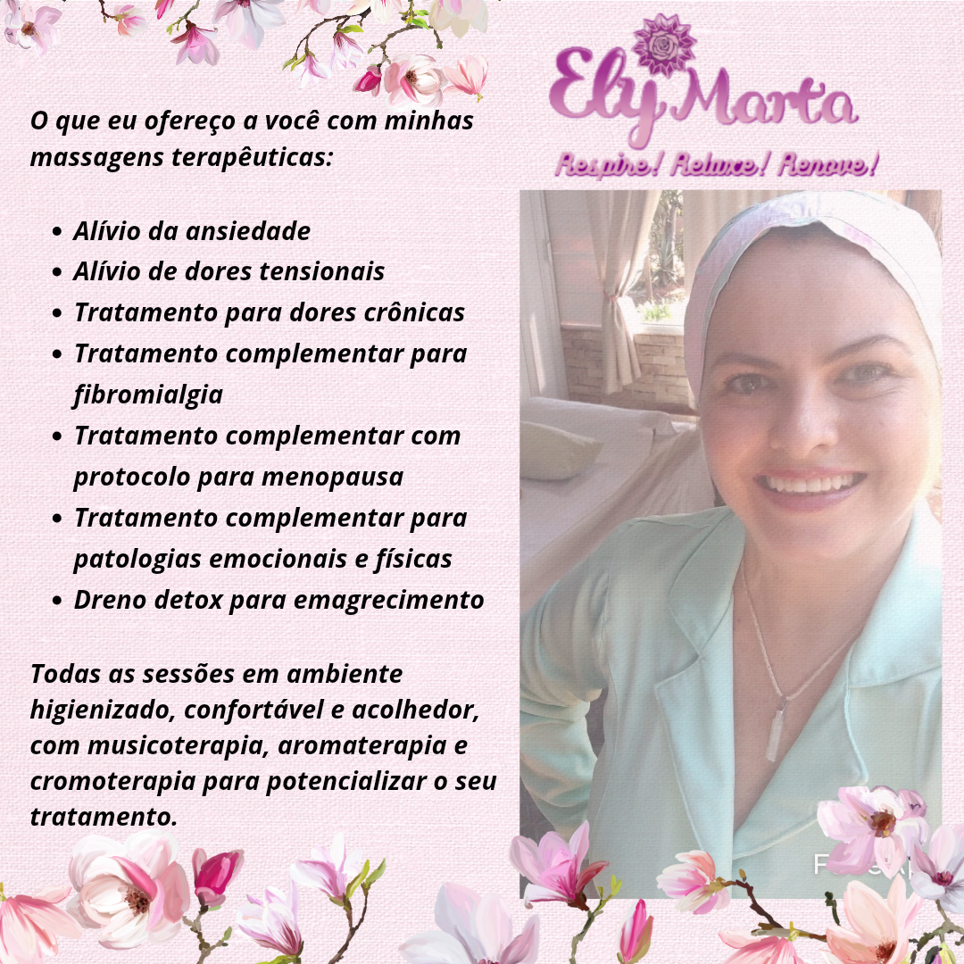 Ely Marta é massoterapeuta em Campo Grande (MS), com massagens terapêuticas para alívio de ansiedade e dores tensionais, promovendo relaxamento.