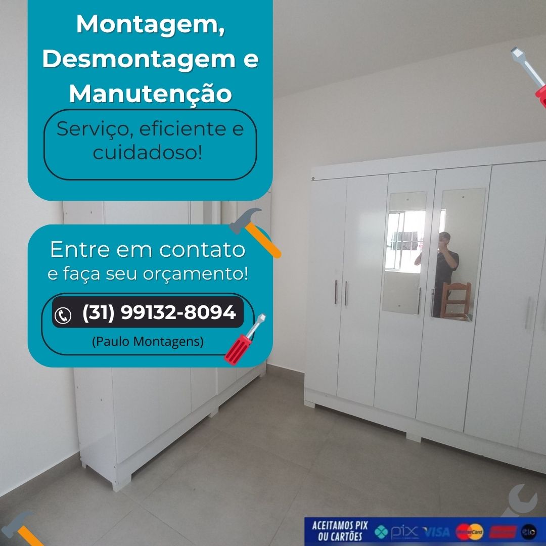 Paulo Henrique é montador de móveis em Ribeirão das Neves - MG, com serviços de montagem, desmontagem, reforma e manutenção de móveis.