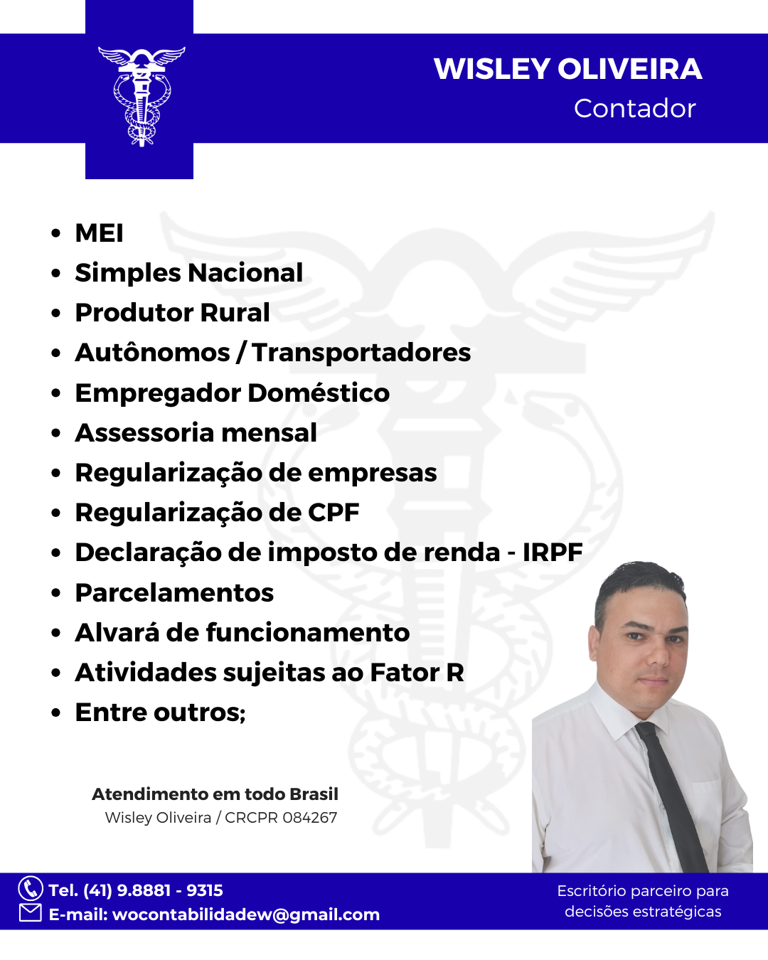 Contato: 41 98881-9315 e-mail: wocontabilidadew@gmail.com